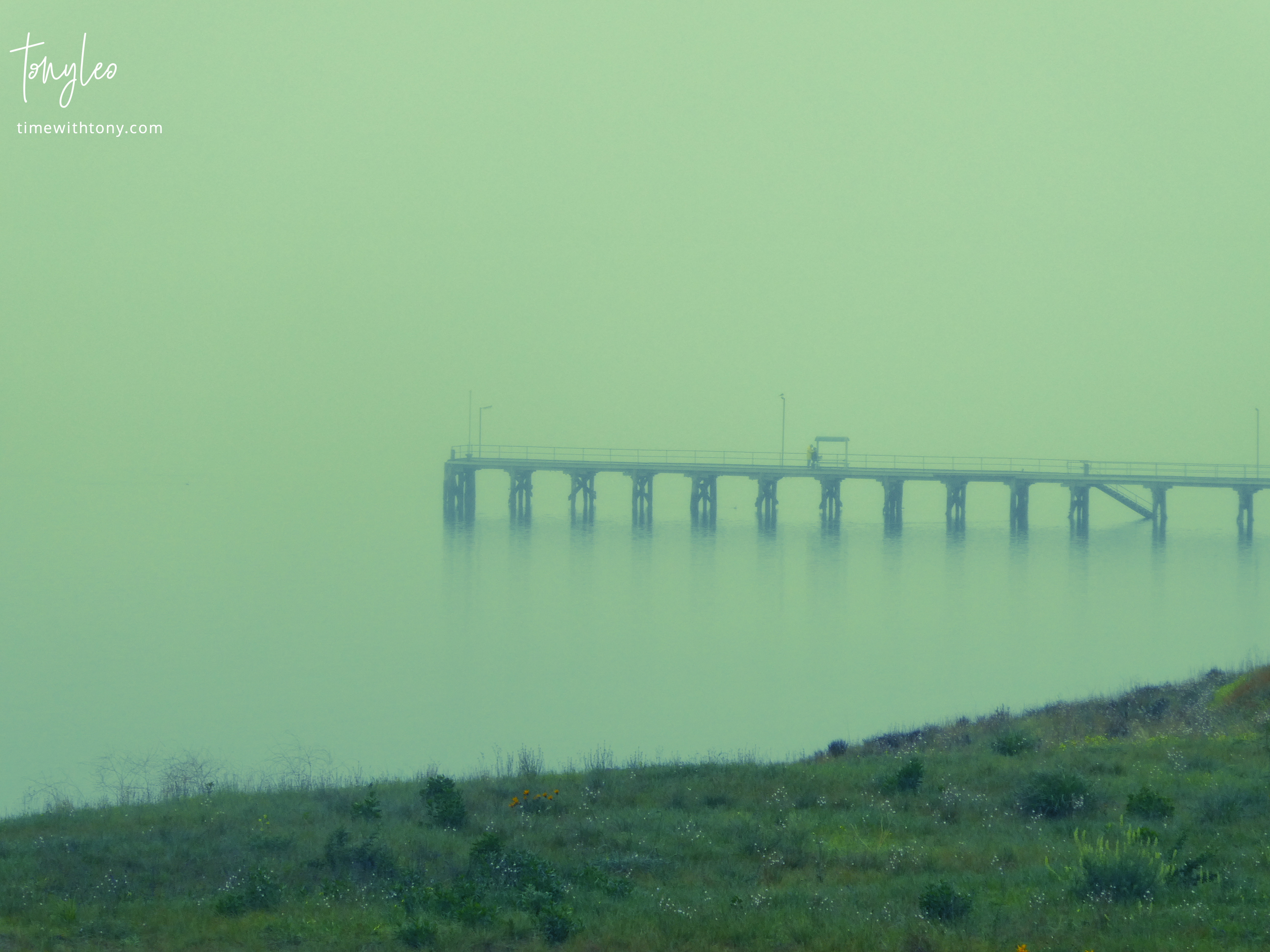 The lonely pier at Stansbury, on the calm sea, fog hovering, little drizzle. Alone, isolated, is that how you feel. How do you move on from being lost. A person with no home, not wanting to find a home. The wanderer. I need to find comfort in being on my own, comfort with self. Let my mind think deep & be myself, find myself. The self talk can be negative, but can be beautiful if I let it. I need to let it. Thank you lonely pier, I am grateful that you helped me in this 5 minutes of my life. Bless you.